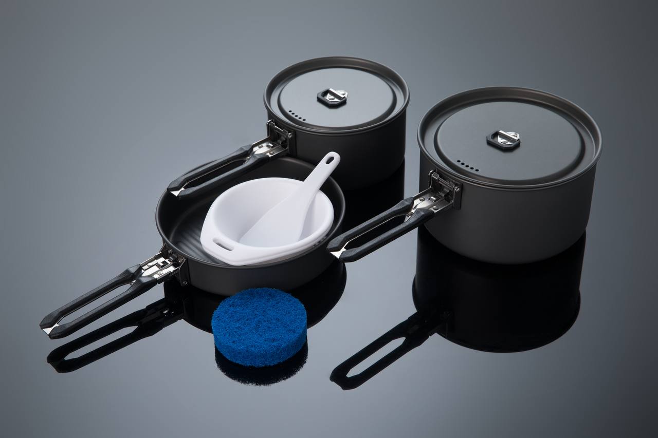 Inculded : 2 pots, 1 frypan, 2pp bowls, 1 scoop, 1 sponge